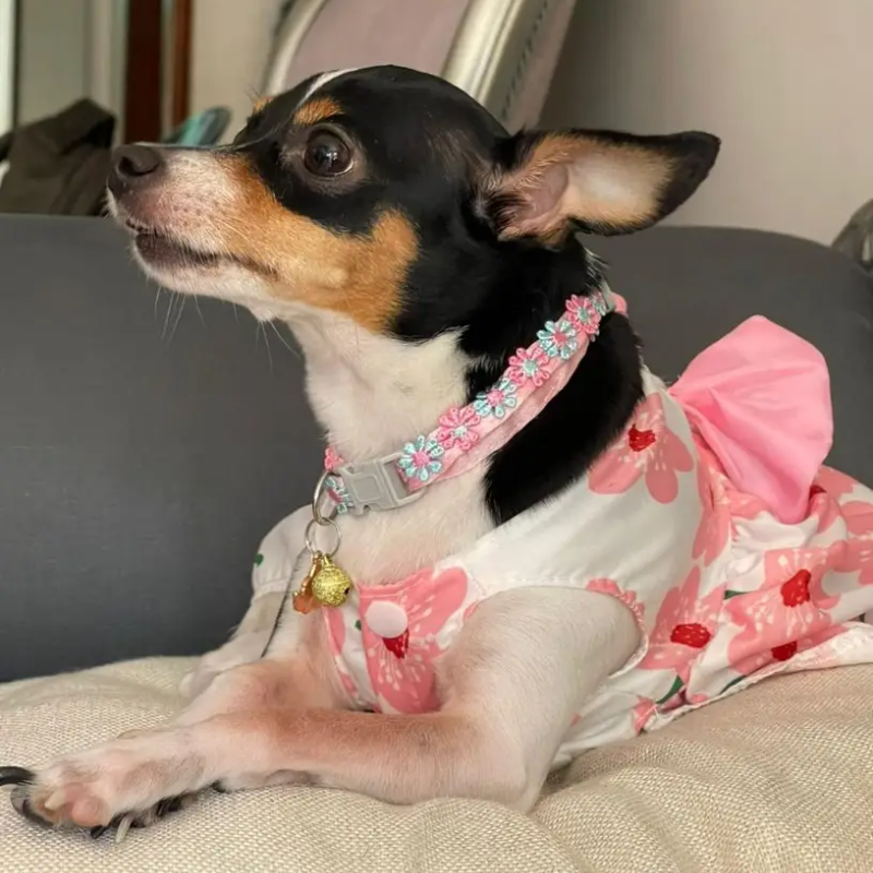 "Absolutely love it! The floral print is adorable, and the bow makes it extra fancy. Perfect for my Pomeranian."