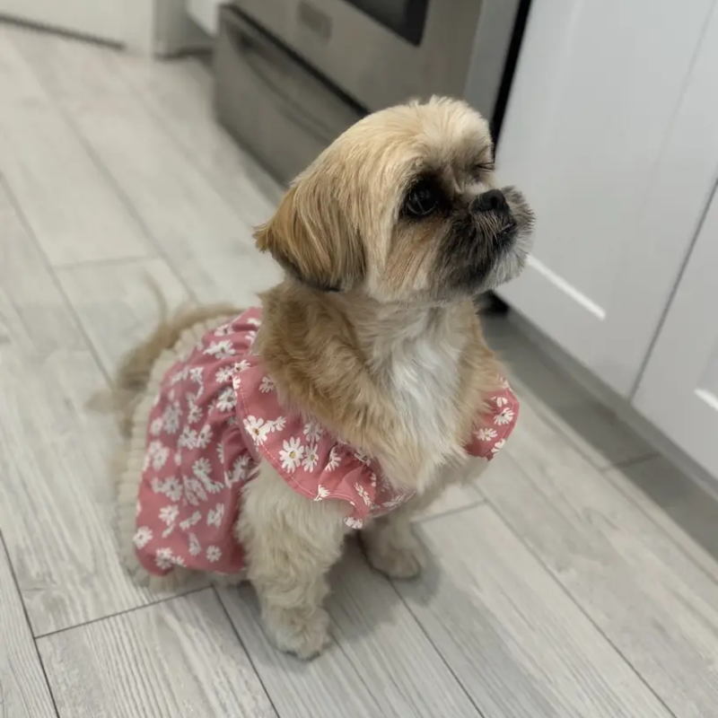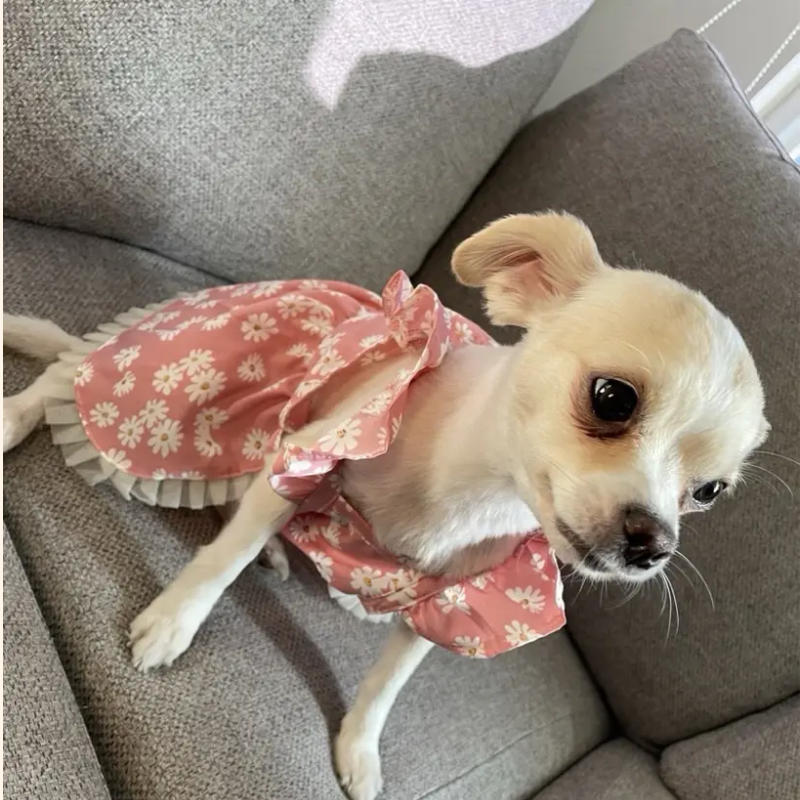 "Such a cute and well-made dress! It fits my small dog perfectly, and the floral print is just beautiful. Love how lightweight it is for warm days!"