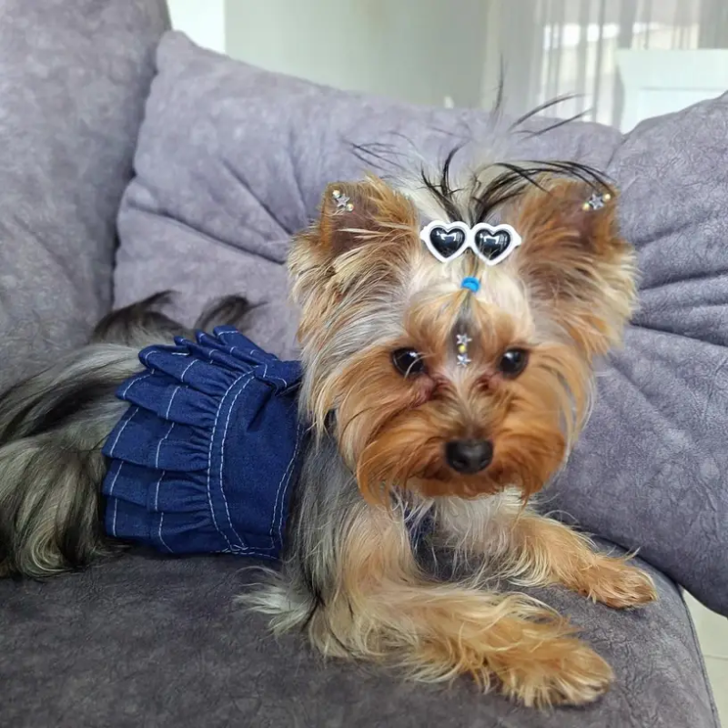 Absolutely! Made from soft, breathable denim, this dress is lightweight and comfortable for all-day wear. The design ensures easy movement without restricting your pet.