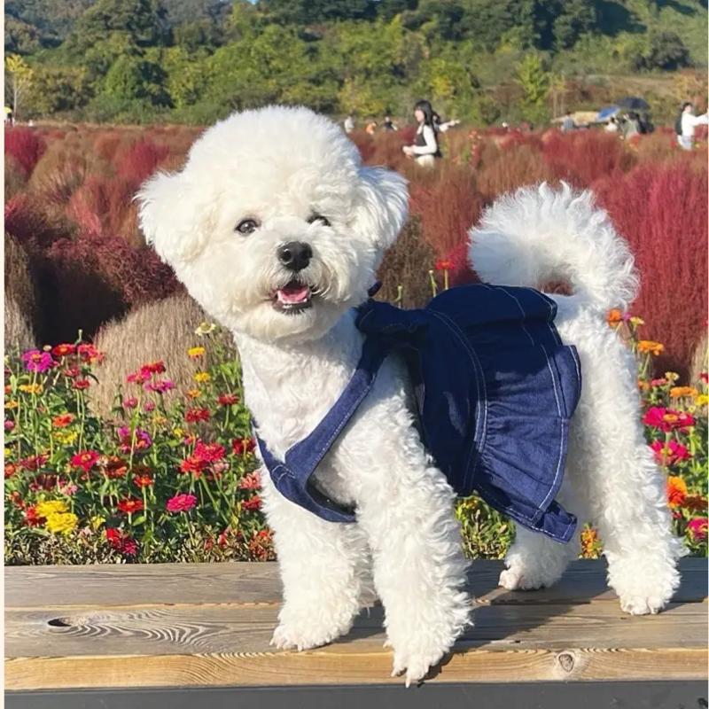 Give your furry friend the perfect blend of fashion and function with the Denim Chic Bow Pet Dress! Designed with a stylish denim look and an elegant bow, this dress doubles as a harness with a secure D-ring, making it perfect for daily walks or special occasions.
