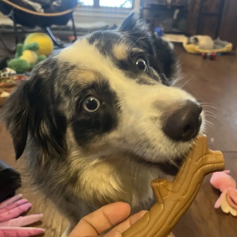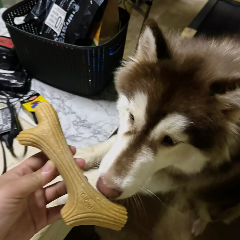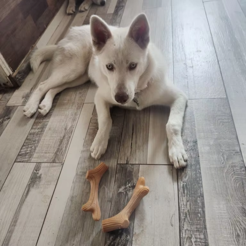 "My dog loves chewing on sticks, but I always worried about splinters. This toy is the perfect solution! It has a real wood feel but is completely safe and mess-free."
