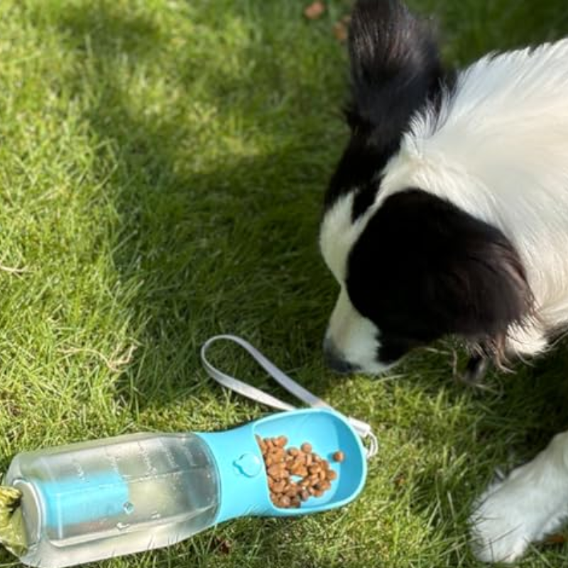 “A game-changer for travel! My pup loves drinking from it, and I love that I can carry food and water in one bottle.”
