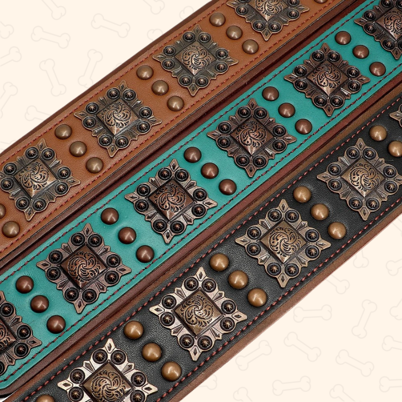 Give your powerful pup the ultimate combination of strength, comfort, and style with the Royal Guard 2-Inch Wide Leather Dog Collar. Designed for large and medium-sized breeds, this handcrafted genuine leather collar features heavy-duty metal rivets and an eye-catching vintage design, perfect for Pitbulls, German Shepherds, and other strong dogs.