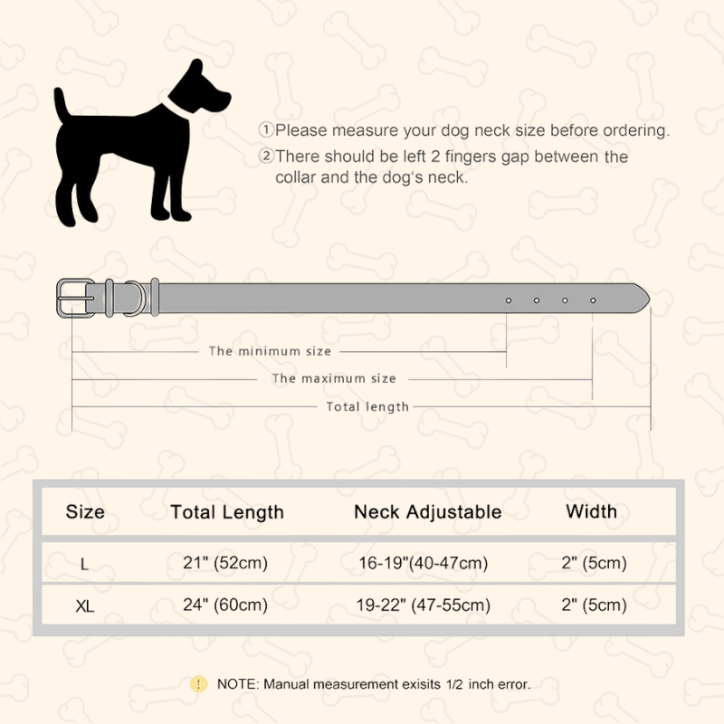 This collar is not just a statement pieceβitβs made to withstand daily wear and tear, keeping your dog both secure and stylish. The thick, durable leather provides comfort, while the strong metal hardware ensures long-lasting durability.