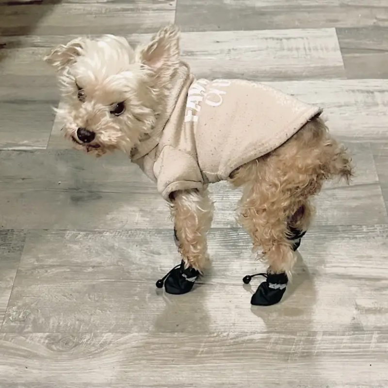 "I was worried my pup wouldn’t like them, but he walks just fine! The adjustable straps make a big difference, and the anti-slip grip is great on tile floors."